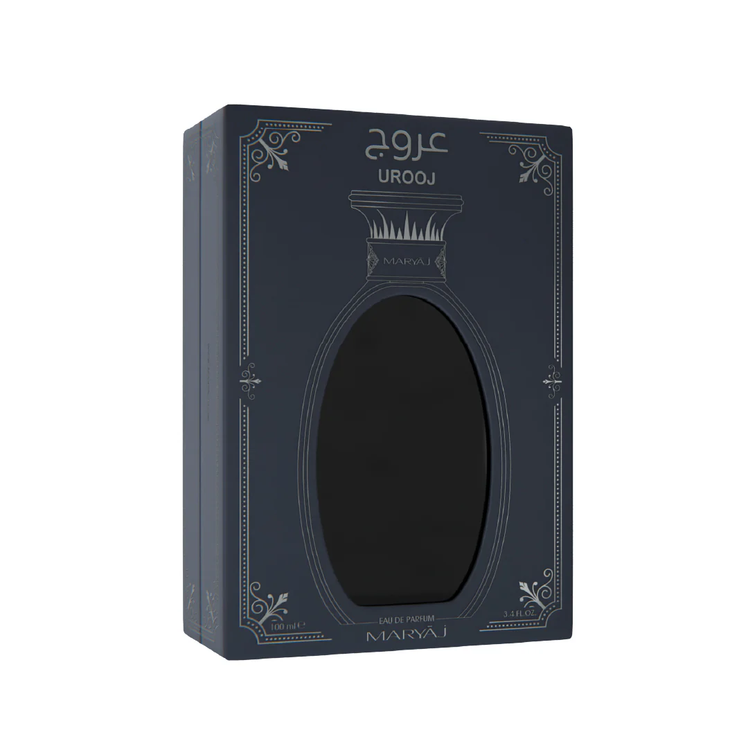 The dry-down reveals the soul of Urooj. Oudh brings its signature deep, smoky, woody richness with a scent that’s earthy, complex and full of character. Leather adds strength and smoothness with a refined, subtly animalic edge. This powerful base lingers with a dark, elegant warmth that feels confident, bold and unmistakably luxurious.