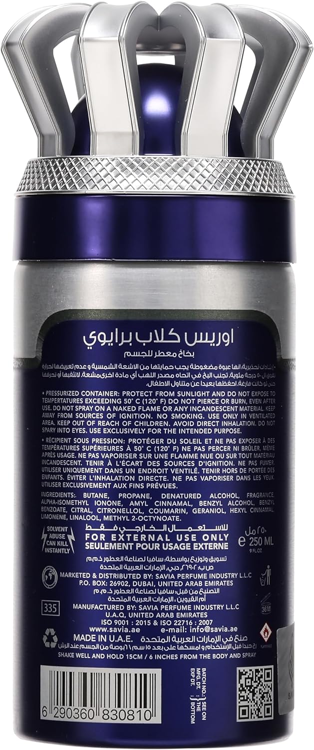 Orris Club Privee 250ml Extra Long Lasting Perfume Body Spray For Him By Mystiq